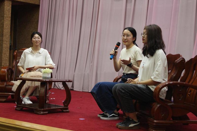 在第一部分“考研”中,王栋和胡心怡向同学们介绍了考研如何择校以及作息和减压方法,让同学们对考研有更深入的了解。会后,一名大一的同学表示:“我还以为考研还离我很远,听了学长学姐的话,让我认识到,要从现在开始打好基础。”
