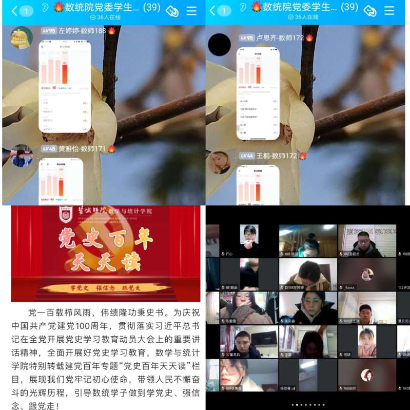 fun88乐天使灵活采用互联网、校园网与线下教育相结合,PC端与手机端相结合,现场学习与视频教学相结合等方式,依托“学习强国”、微信公众号、QQ群等新媒体平台,开展形式多样的学习教育,宣传党的奋斗历程、光荣传统和伟大成就。目前,微信公众号已推出25期“百年党史天天读”,累计阅读量达4000余次;全体党员的“学习强国”活跃度连续多日达100%;开展主题班会、团日活动、学习分享会90余场。