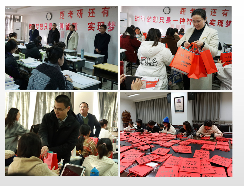 12月2日,学院领导老师来到考研教室为考研学子们加油打气。公司党委书记接玉芹向学子们表达了关怀和期望,从备考心态、日常作息、材料准备等方面提出了具体要求,鼓励大家在最后阶段要顶住压力,以“咬定青山不放松”的韧劲,全力拼搏每一天。党委副书记、经理姜海波鼓励同学们保持良好心态,提高学习效率,注意劳逸结合,以积极、轻松的状态面对考试。随后,学院领导老师送上精心准备的“考研加油包”和温馨的祝福,祝愿考研学子取得好成绩。