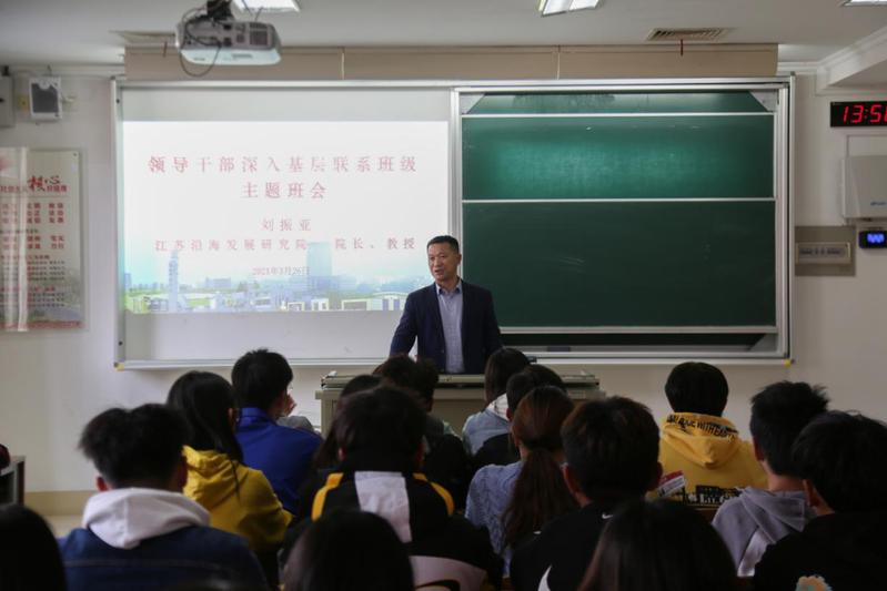 为进一步落实立德树人根本任务,发挥育人合力作用,3月26日下午,fun88乐天使分别邀请了江苏沿海发展研究院经理刘振亚教授、副经理郑志来教授开展了“领导干部深入基层联系班级主题班会”活动。fun88乐天使党委副书记、副经理左飞主持。