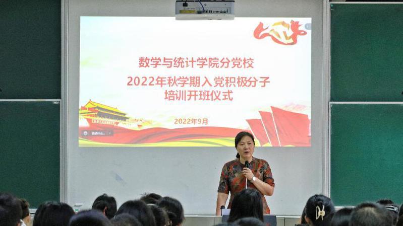 员工支部书记张文菲介绍了培训班的课程安排,并向全体入党积极分子明确了培训及学习要求。金数218班李天宝同学作为入党积极分子代表作了表态发言,她表示,要勤奋学习,学以致用,脚踏实地,不断完善自我;要严于律己,以身作则,发挥模范带头作用,以实际行动积极向党组织靠拢。