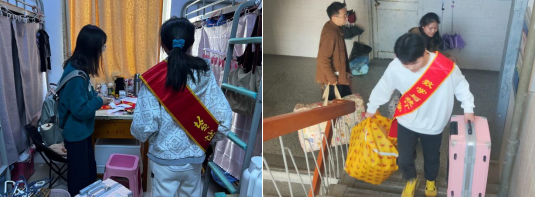热情迎接,暖心帮助。转专业员工报到当天,学院组建了一支20余人的志愿服务队,积极帮助转专业同学搬运行李。学院辅导员深入搬迁现场和员工宿舍,维持现场秩序、清点行李物品、安排志愿者、现场解答问题,有效保障宿舍搬迁工作安全高效完成。志愿者们一趟趟搬运行李的过程中,亲切地与转专业的同学们交谈,帮助新同学尽快熟悉新校园,并为他们解答有关新专业的问题,努力为新同学们提供最精致、最热情的服务,让新同学们体会到了数统大家庭的温暖。