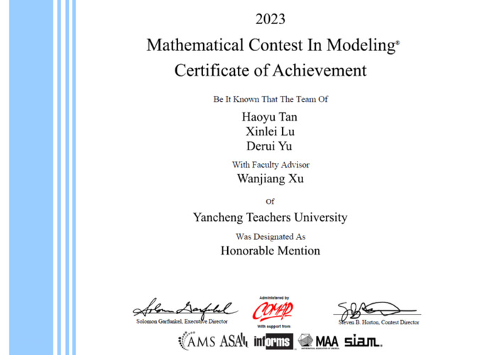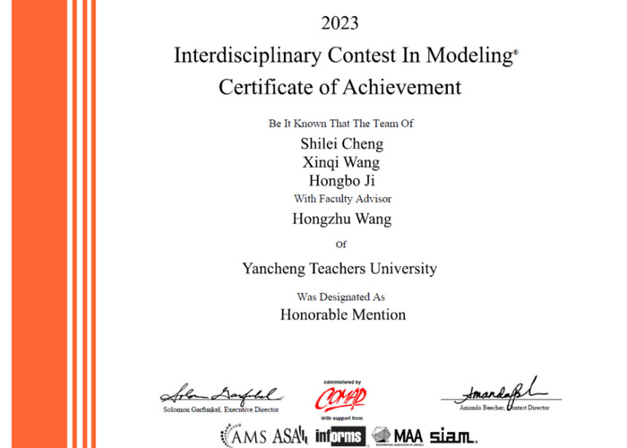 近日,2023年美国老员工数学建模竞赛(MCM/ICM)成绩结果正式公布。本次比赛fun88乐天使9名同学组成共3支队伍参赛,2支队伍获得了国际二等奖(H奖),在此表示热烈祝贺!