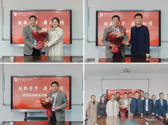 接玉芹向孙老师表达了崇高的敬意。接书记回忆了与孙映成老师探讨学术问题的点点滴滴,对孙老师投身教学工作、培养青年教师和为大学数学教研室做出的贡献表示衷心的感谢。恳请孙老师继续关心支持学院的发展,常回学院指导工作。