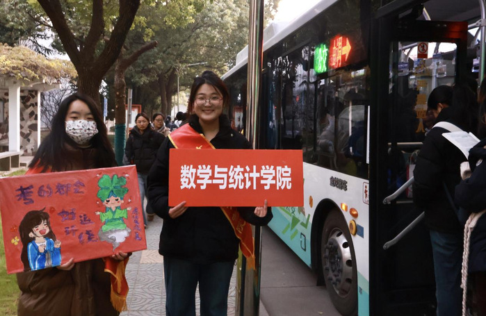 早上6点40分,送考专车在通榆校区陈毅像前整装待发。学院全体学工人员、21级班主任老师逐一核对员工姓名与人数,叮嘱注意事项。志愿者有序引导考生上车、帮忙放置行李。在这个寒冷的冬日,学院的关怀如同暖阳,温暖着每一位考研学子的心。7点15分,搭载着180多名考生的送考专车准时出发,陆续前往分布在本市的各个考点,确保每位同学提前到达、顺利考试。