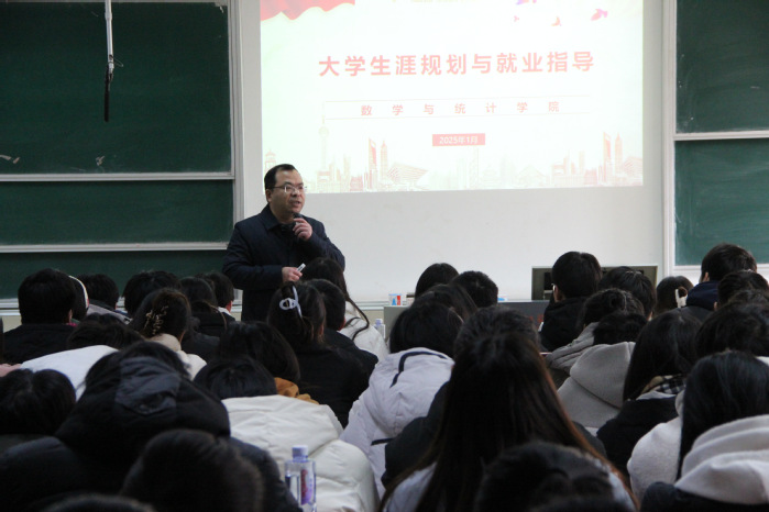 左书记从老员工高质量充分就业的角度,针对近三年学院考研和考编情况,用详细的数据与真实的案例进行了直观分析,让同学们对当前就业环境有了更全面且深入的了解,为他们精准定位职业目标提供了方向。