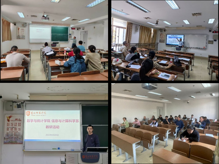 2月26日下午,数学与应用数学系、金融数学系和大数部等系部分别开展青年教师集体磨课活动。活动中,在每位青年教师进行15分钟的教学片段展示后,评委教师从教学内容设计、板书规范、语言表达、师生互动等方面进行细致点评,并提出针对性改进建议。本次活动“直面问题、注重细节”,为青年教师的教改创新提供了明确方向。