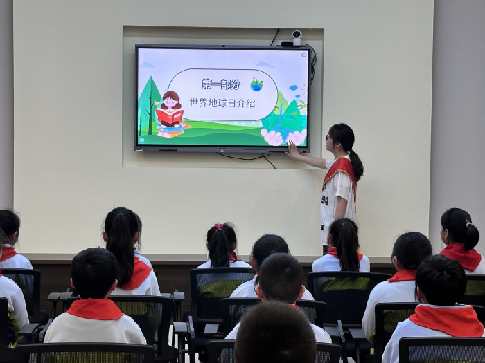 在地球日科普宣讲环节中,盐师学子化身“科学导师”,通过图文展示与讲解,系统介绍了世界地球日的起源与发展;通过数据与案例,阐述地球面临的生态挑战,在青少年心中播撒生态文明实践的种子,引领他们探寻绿色实践的可行方向。