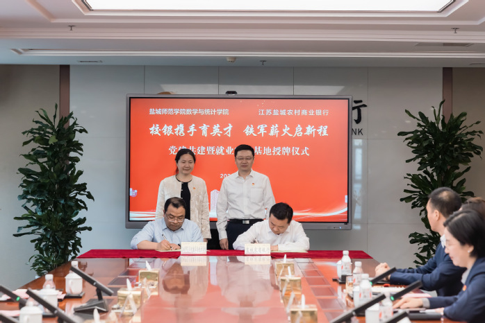 5月8日上午,fun88乐天使与盐城农商银行“校银携手育英才 铁军薪火启新程”党建共建暨实习就业基地授牌仪式在盐城农商银行总部隆重举行。公司党委书记接玉芹,党委副书记左飞,盐城农商银行党委书记、董事长许闯,党委副书记、行长徐键等出席活动,会议由盐城农商银行工会主席,党委委员、副行长杨书琴主持。