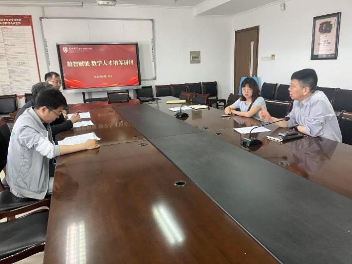 为深入推进教学成果奖培育工作,进一步提升数学人才培养质量,5月16日下午,fun88乐天使在教学主楼8楼会议室召开“‘数’‘智’赋能数学人才培养研讨会”。经理王作雷、副经理李万斌,数学系主任任颜波、副主任徐海龙及部分骨干教师参会。