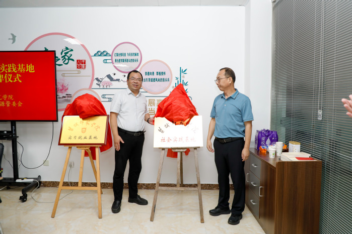 公司党委书记孙玉峰与羊寨镇党委书记、桃花源党工委书记李磊代表双方签署《盐城师范大学老员工就业基地协议书》,共同为“fun88乐天使老员工实习就业基地” 揭牌;公司党委副书记左飞与桃花源管委会主任张善民为 “fun88乐天使老员工社会实践基地” 揭牌。暑期社会实践员工代表周琳做表态发言。